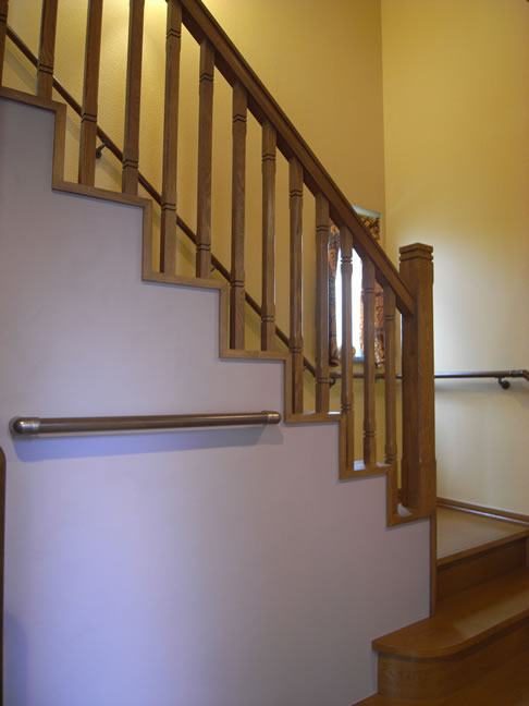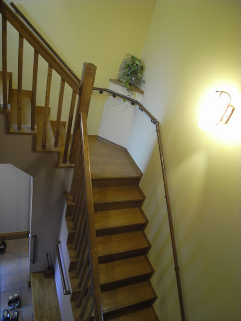 階段を上がり2階の廊下部分も、元々は左の写真のような白のビニールクロス。
