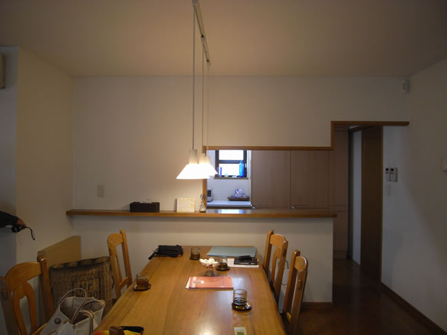 造作の変更は無く、トイレ便器の入れ替えや、手すりの設置、照明器具の交換、建具のノブ交換などのほかは、室内のほとんどを、ビニールクロスからペイント仕上げへの変更となりました。