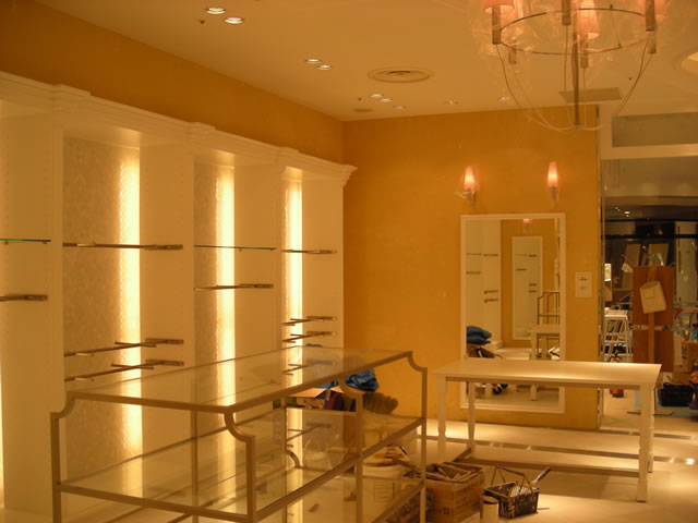 さて、店内は天井・壁ともSTONE BOLDストーンボールドを採用、柔らかい陰影で雰囲気のある空間になり、奥の面を渋くも深みのある色で塗り分け、良いバランスになりました。