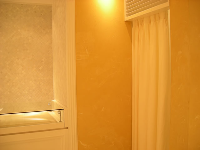 そして、壁面にはカバードインペイントの人気製品「STUCCO(ストゥッコ)」を、ちょっと特殊な手法で塗りました。色を混ぜ込みながら塗ることでこのようなマーブリングが得られます。