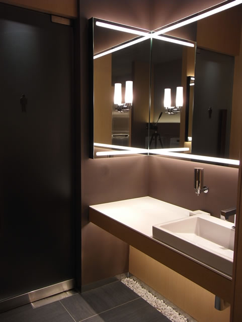 他にも扉枠や鏡枠などをBRONZEブロンズを使った特殊塗装にしたり、非常にスクエアミーターの特徴が活きた使い方をしていただきました。(設計:S・O・Y建築環境研究所)