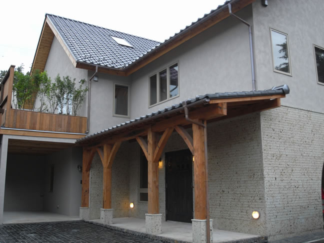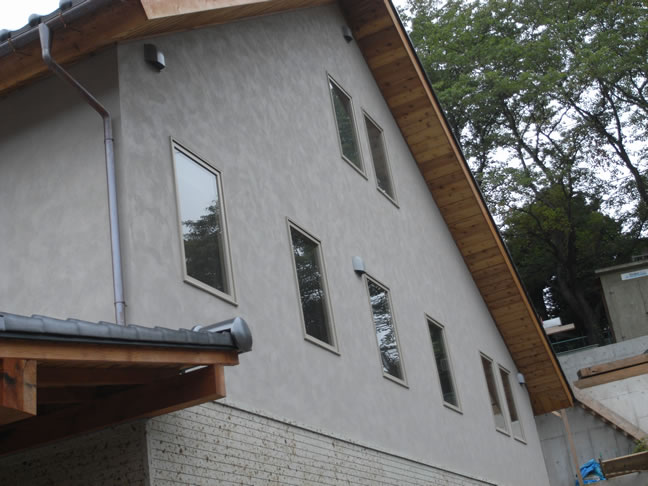 外壁は下半分が大谷石貼り、上半分はカバードインペイント「STONE COARSE」を塗り、大谷石の存在感に負けない質感を醸し出しています。