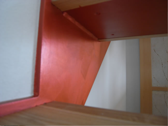 そして、踏み板を支える鉄骨には、カバードインペイントの新製品METALESSENCE RED(メタレッスン レッド)は、全体に通じる和の雰囲気にもマッチしています。
