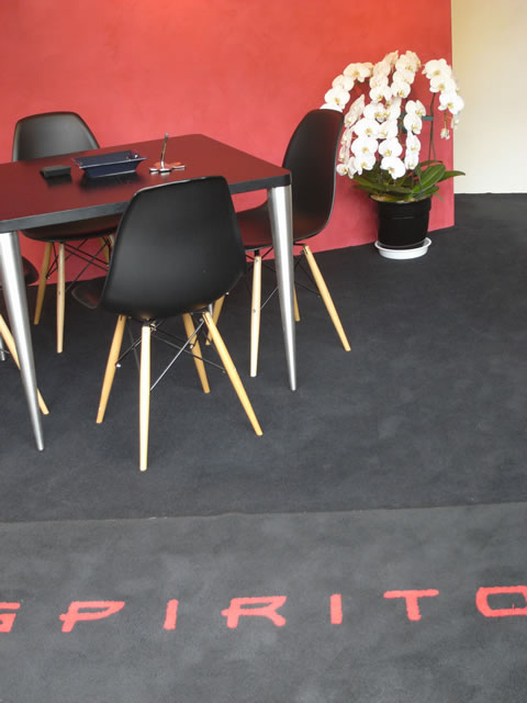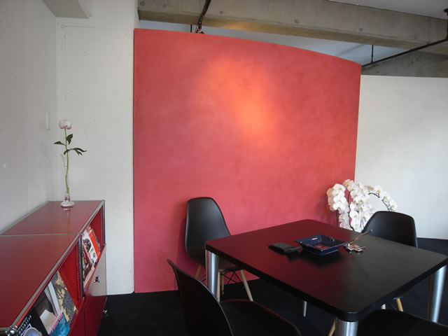 店内改装で立てたパテーションを、マセラティ・ランチア・アルファロメオを中心に扱うショプらしい、イタリアンレッドのSTUCCO ストゥッコで仕上げました。