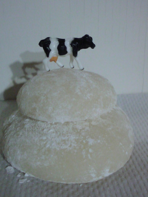 さて、搗いた餅はお腹に納まる分と別に、鏡餅にもしました。丑年なので。。。