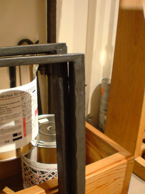 テーブルの足は、いつもお世話になっているご近所さん、横浜・元町「クロコアートファクトリー」にお願いしました。簡単なイメージ図を見て頂いて安い素材でと、あとはお任せだったのですが、やはりロートアイアンのスペシャリスト、シンプルながら素敵なアイアンの足が出来ました。