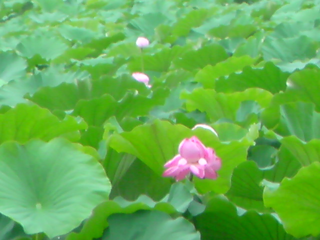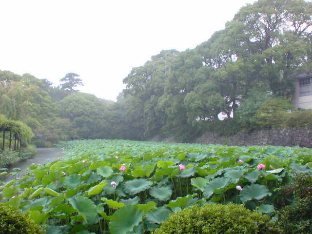 木々に囲まれ、歴史感あふれる雰囲気で、とても広い蓮池があります。