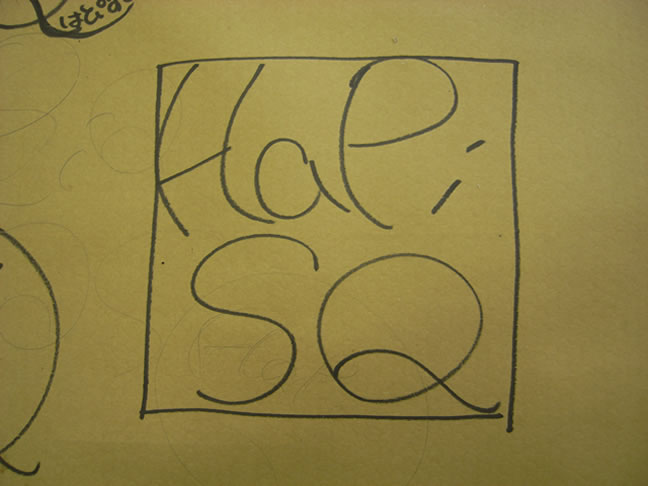 そして、サインのデザインは床に(養生の紙の上に)いろんな案を出し合って決めていきます。