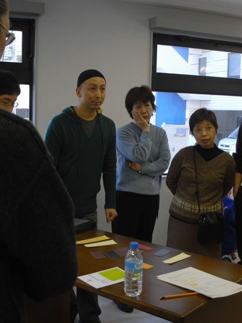 全2回のうち、3月9日に1回目が行われ、全体の色彩計画や今回ポイントとなる「黒板塗料」を塗る箇所を決め、看板のデザインなどを話し合って考えました。