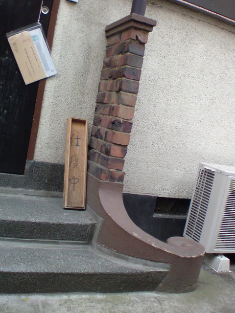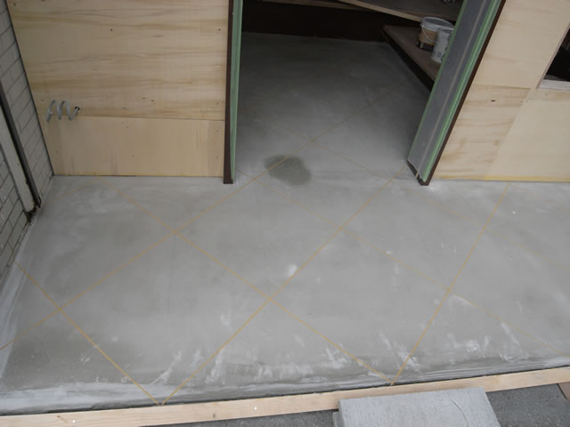 バーの入口付近なのですが、このようなモルタルの状態に目地となる部分をマスキングして