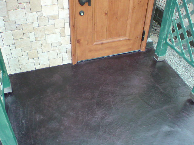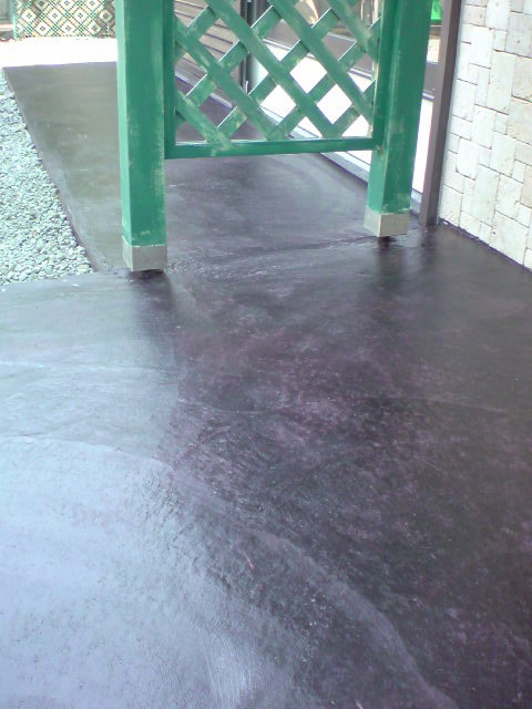 外構のコンクリート部分には、自然な陰影が得られ耐久性も抜群のペイントで、重めの赤ワインのような深い色で着色。