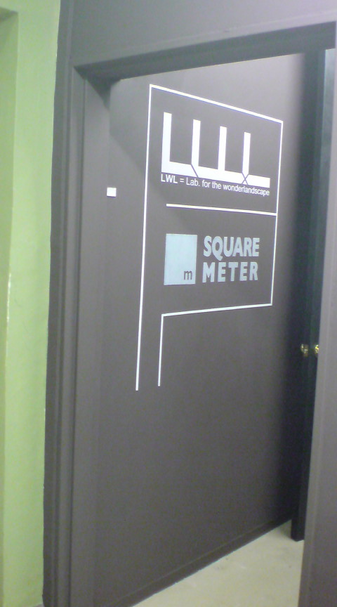 これは、スクエアミーターのショールーム入口の壁ですが、古い建物の雰囲気が随所に見られる中、カッティングシートなどでは得られないハンドメイド感がピッタリと、はまります。