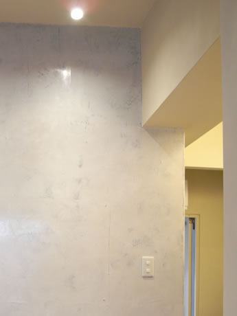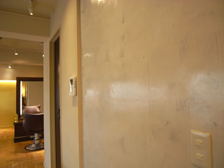 柔らかい自然なツヤが出て、ストゥッコの特徴が生かされ、店舗全体が優しい自然な印象である中に、若干ハードなマテリアルが追加され良いバランスとなりました。