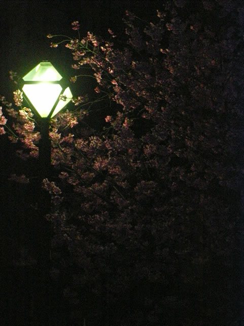 いちょう並木が有名ですが、向かい側の横浜公園では桜の木もあるので、夜桜を見に行きました。
